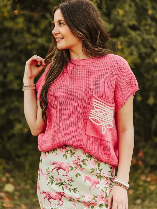 Pink boot stitch sweater
