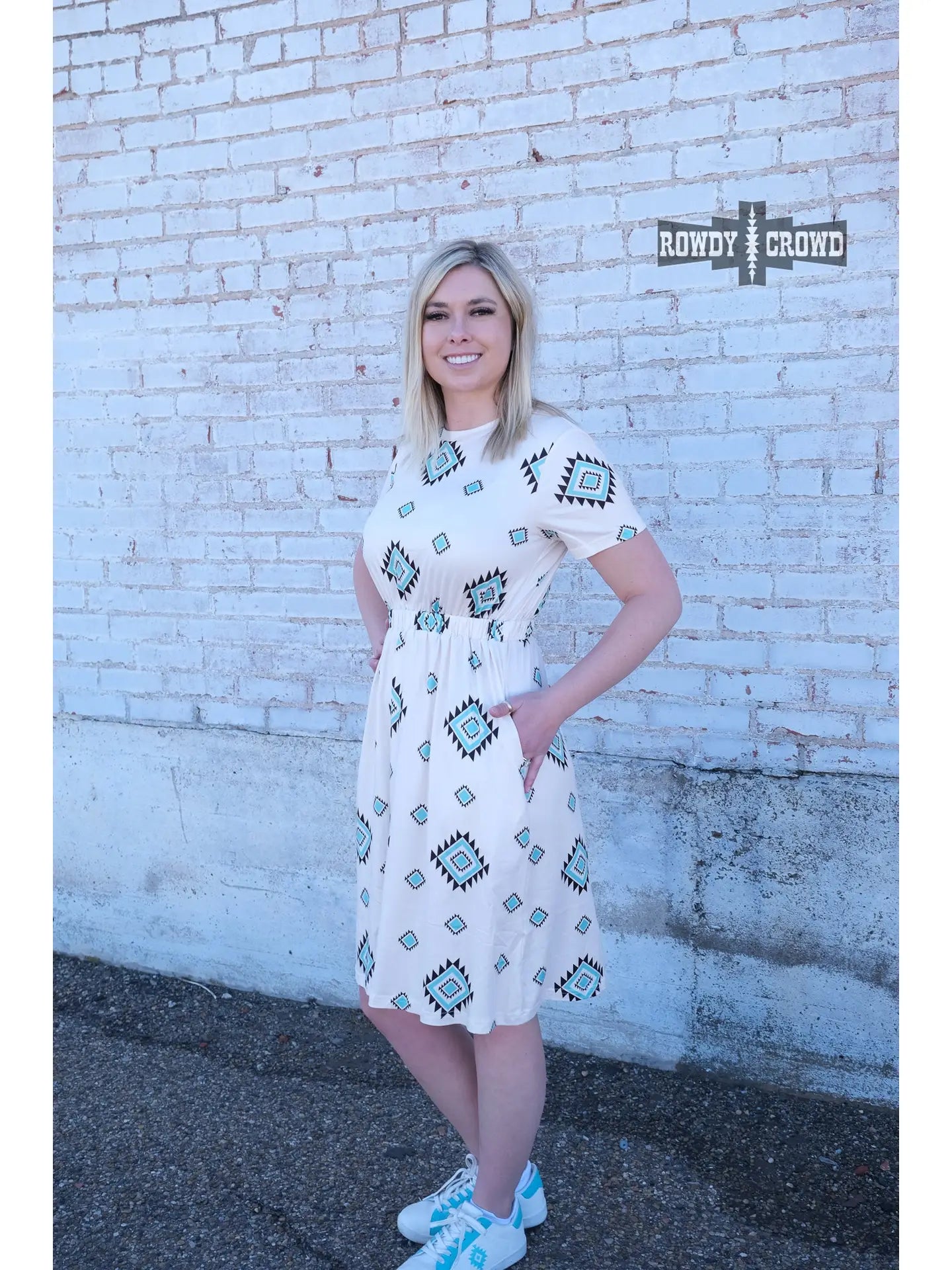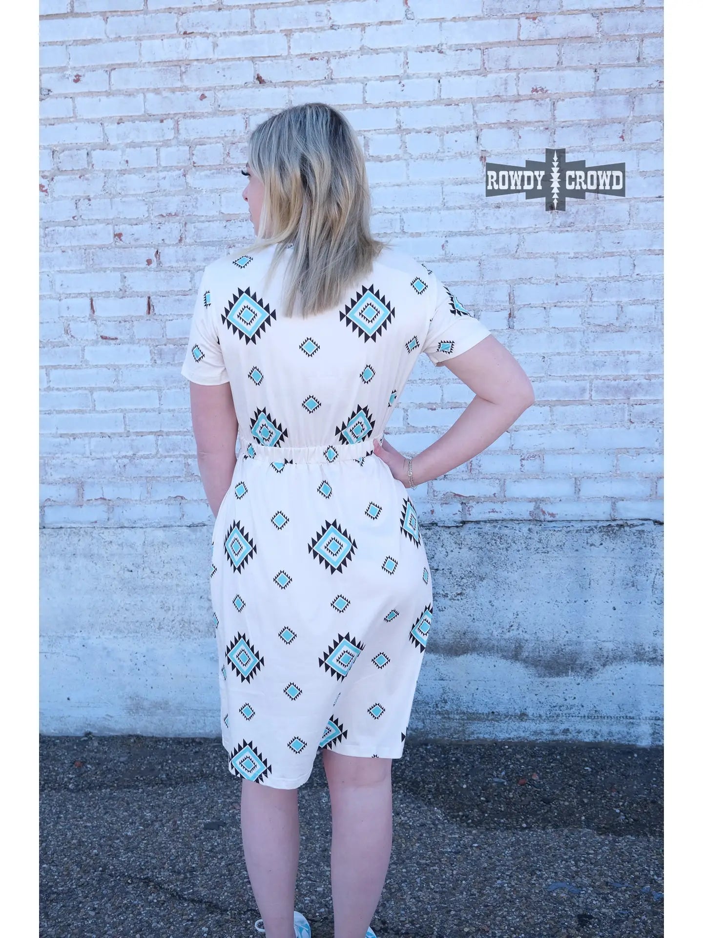 Aztec turquoise design with pockets, 95% polyester 5% spandex