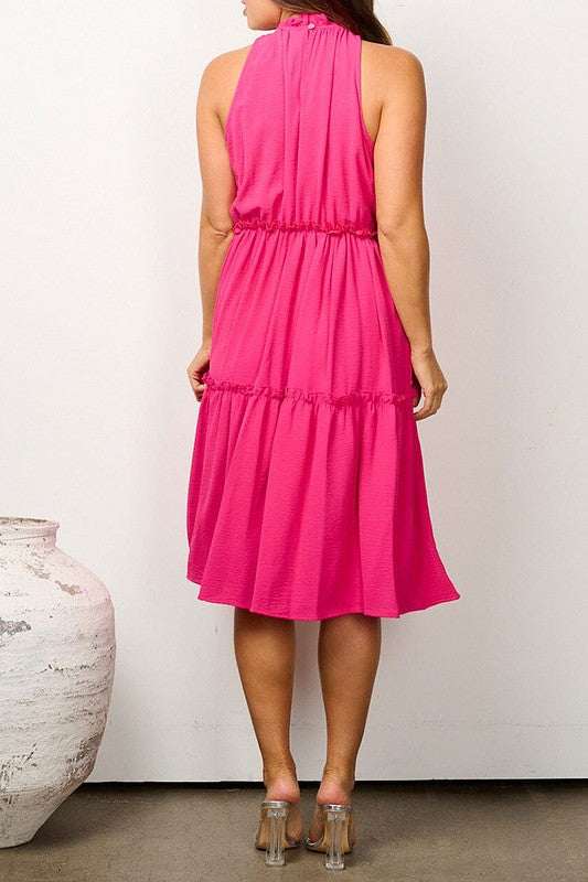 Sleeveless halter neck tiered midi dress, 100% polyester