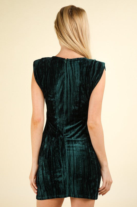 Velvet fitted mini dress with shoulder pads, 100% polyester