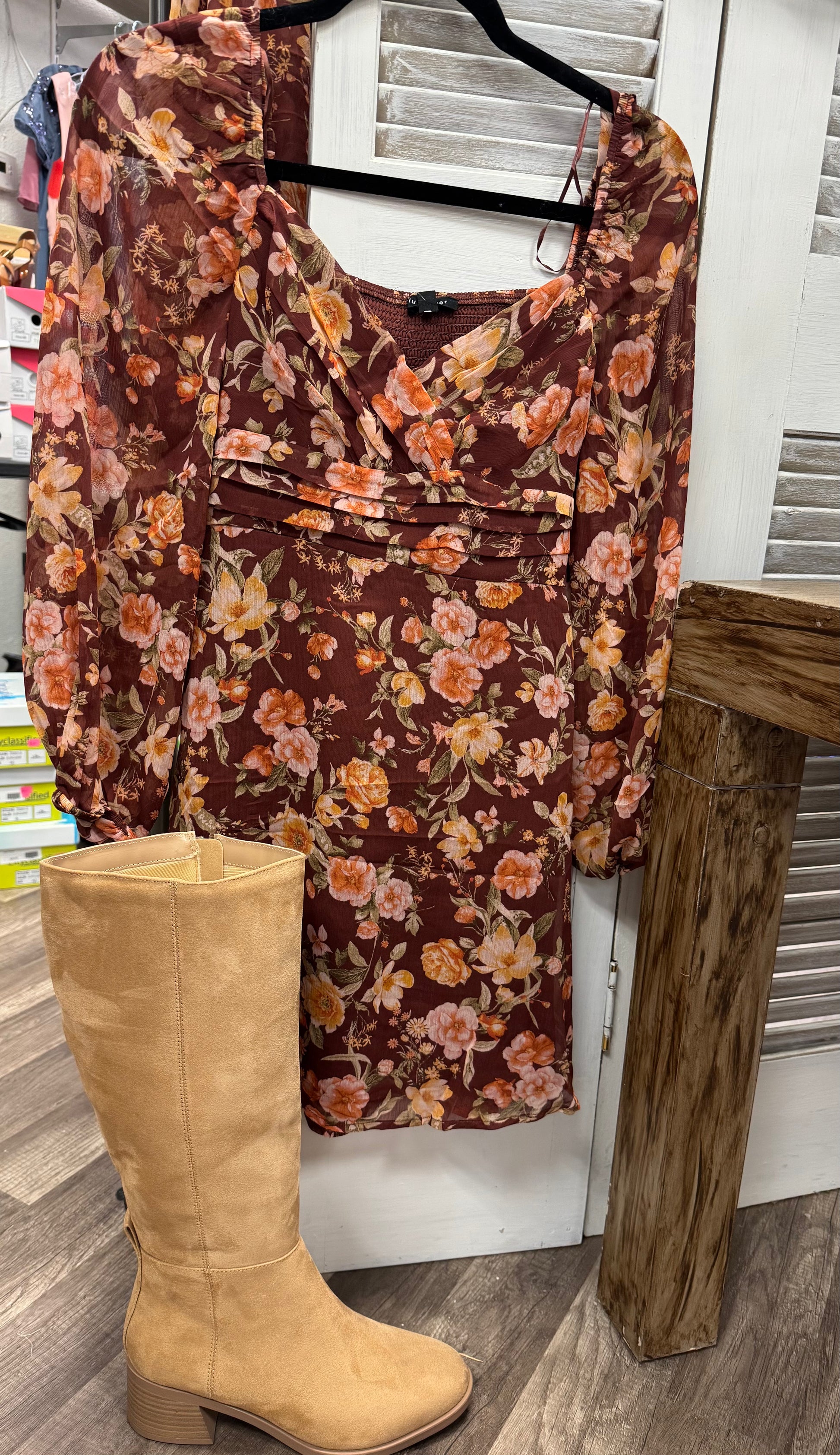 Gorgeous fall colored dress paired with boots for the perfect outfit 100% polyester
