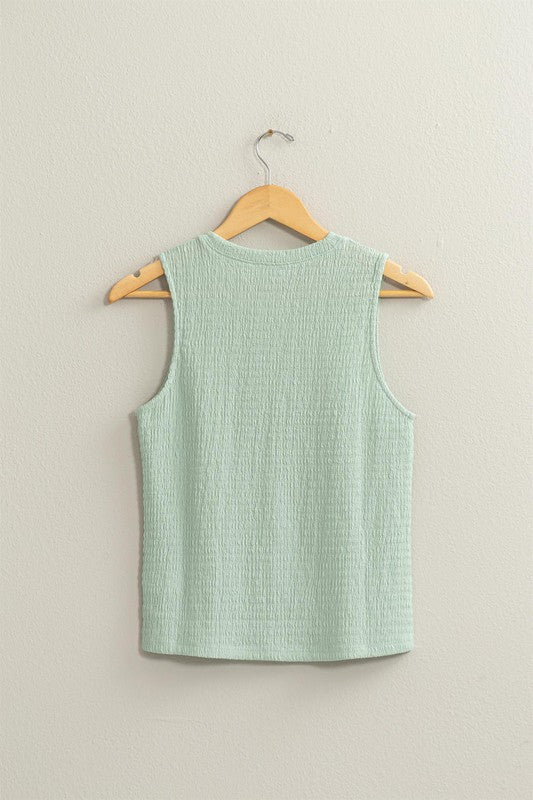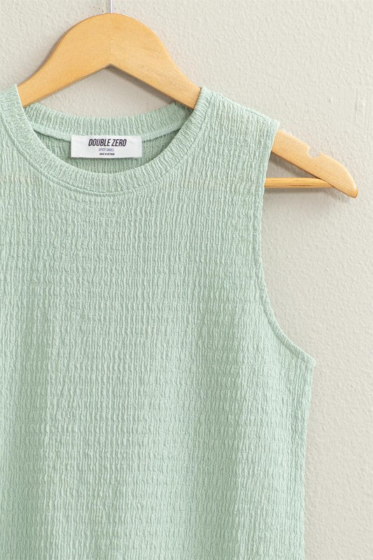 Crew neckline tank with ribbing, 97% polyester 3% spandex