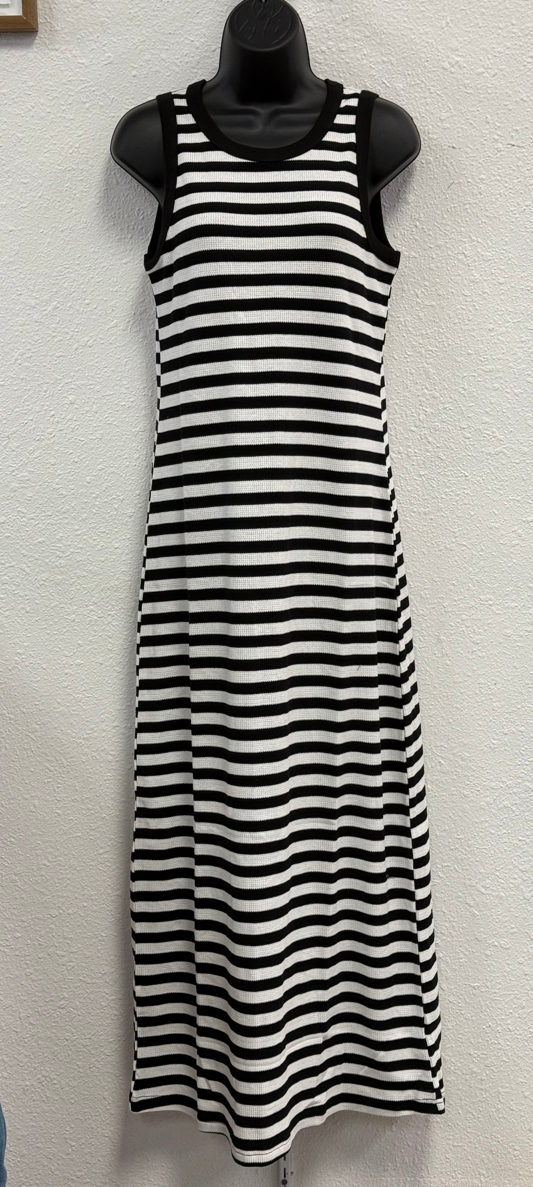 Striped sleeveless tank knit maxi dress, 95% cotton 5% spandex