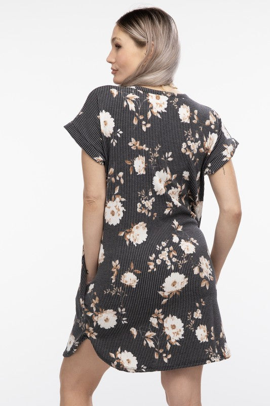 Urban rib floral mini dress, 95% polyester 5% spandex
