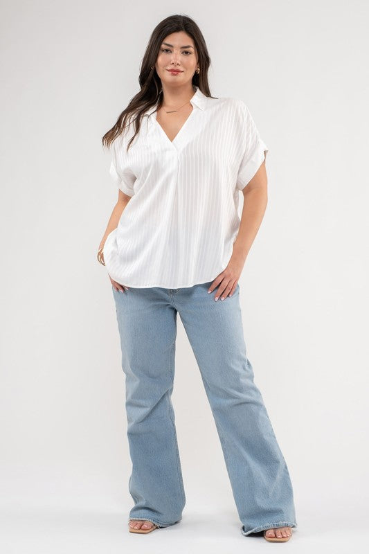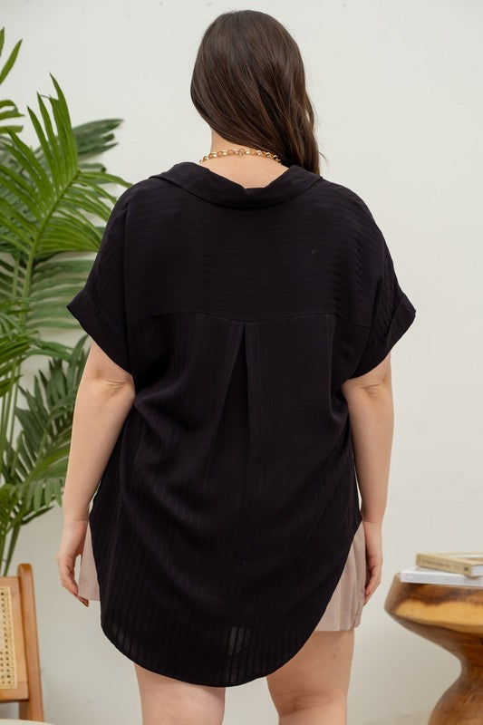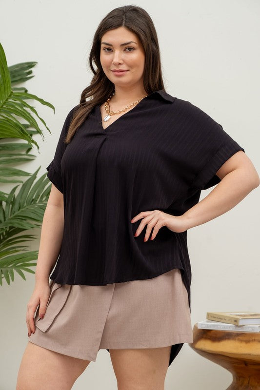 striped short sleeve woven top, 100% rayon