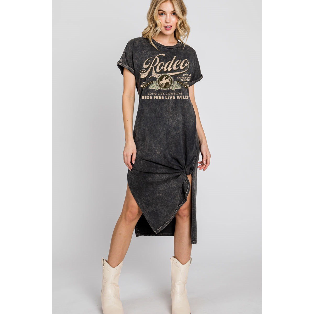 Mineral wash rodeo graphic t-shirt dress, 100% cotton