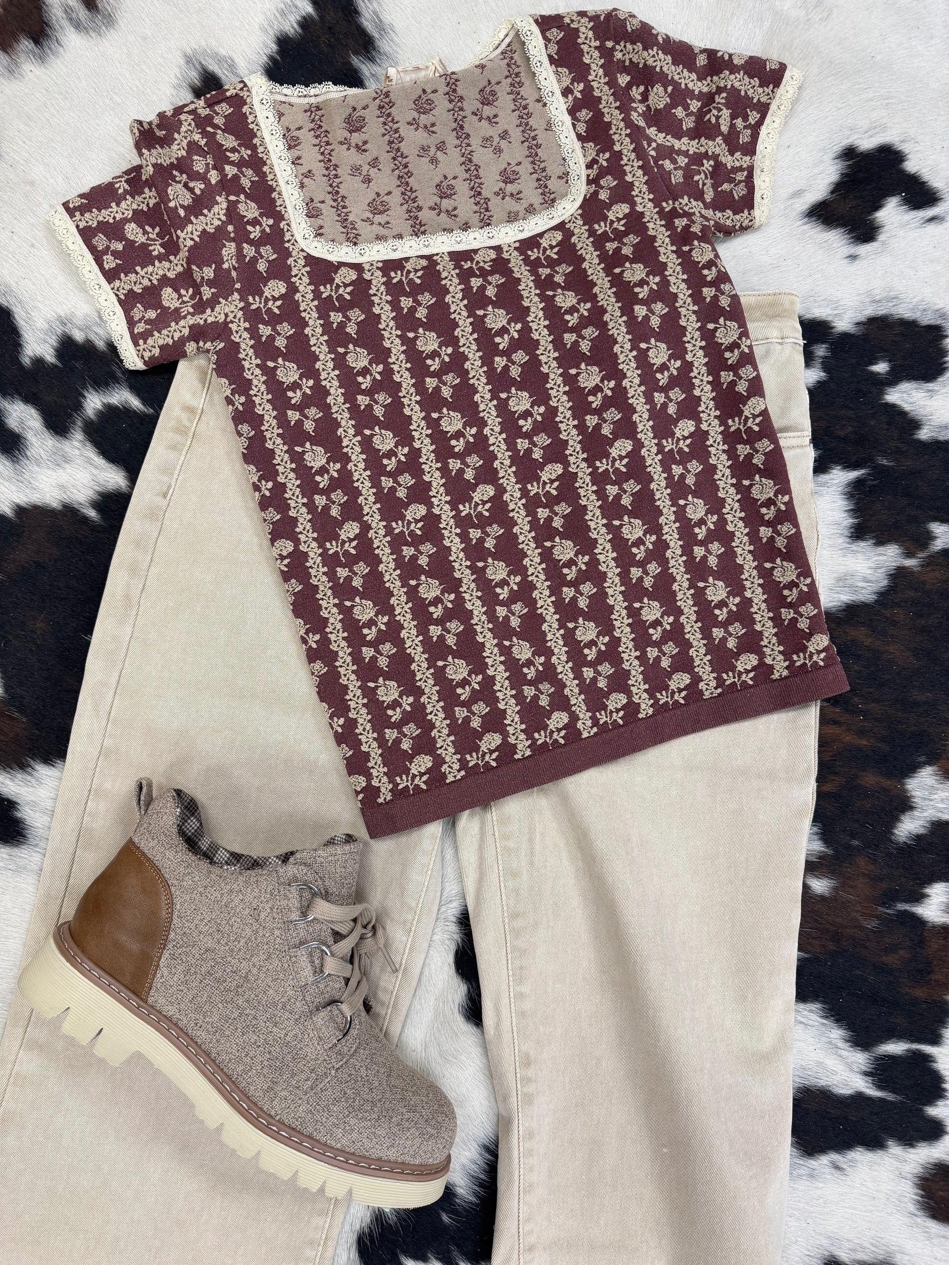 Lace trimmed floral seamless tee
