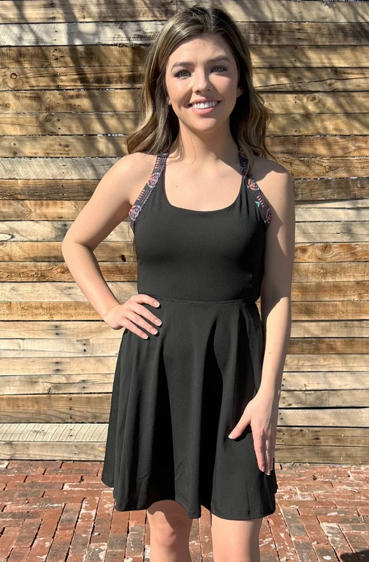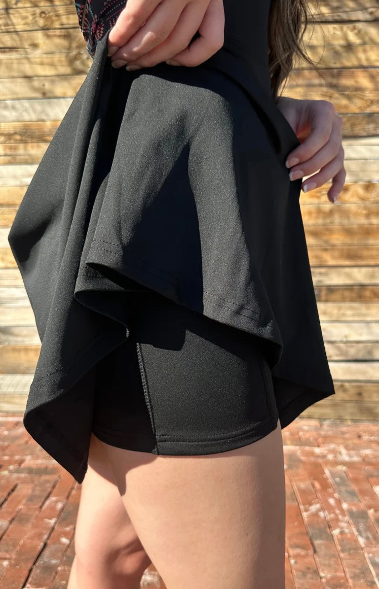 Tennis or swim dress with shorts underneath with pockets. Shorts have open waist in the back, 80% polyester 20% spandex