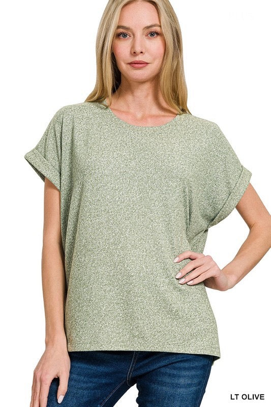 Soft melange short sleeve round neck top, 95% polyester 5% spandex
