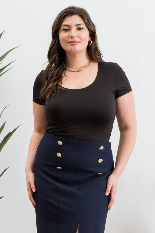 scoop neck short sleeve fitted knit top, 95% polyester 5% spandex